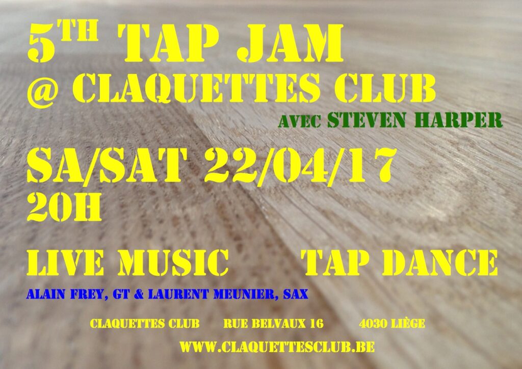 Le jazz et les claquettes, c’est une évidence! Tout comme les musiciens Afro-Américains ont utilisé les instruments européens (Charlie Parker et le saxophone belge!) pour créer cette forme artistique purement américaine qu’est le jazz, les danseurs Afro-Américains ont utilisé les danses européennes (Lancashire Clog, Irish Step Dancing, Scottisch Highland dancing, …) pour créer cette forme artistique purement américaine que sont les claquettes (Tap Dance). Les deux disciplines partagent la même histoire, la même géographie, le même vocabulaire…