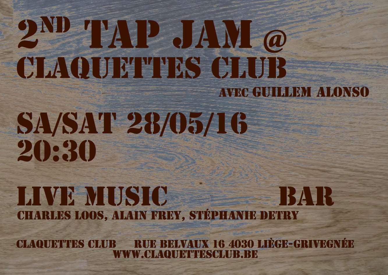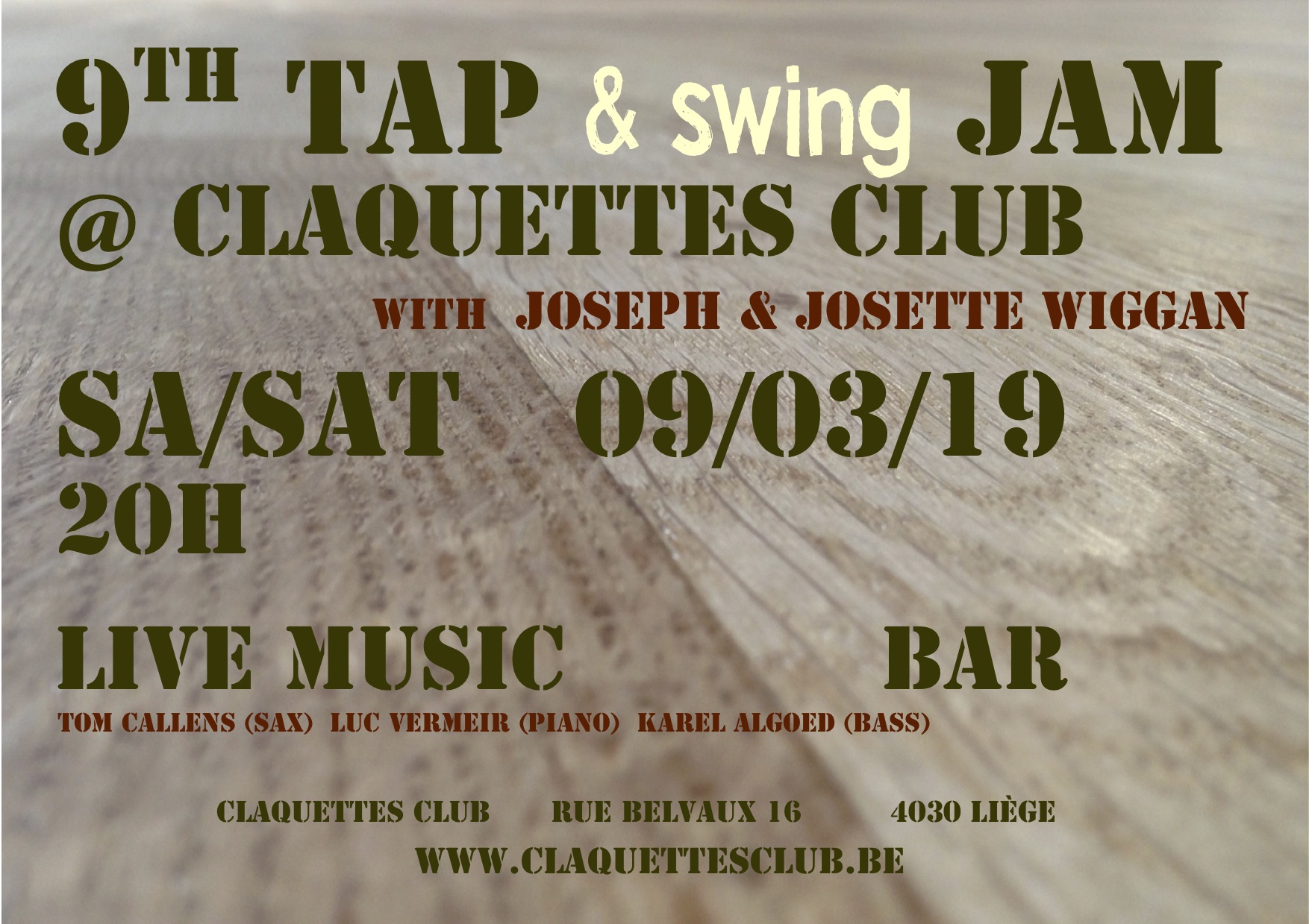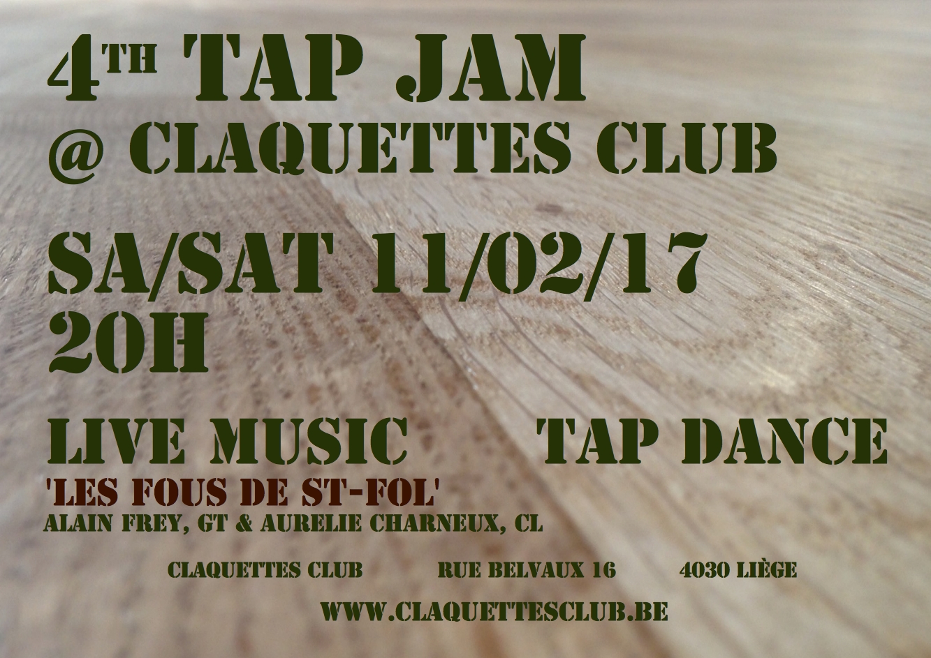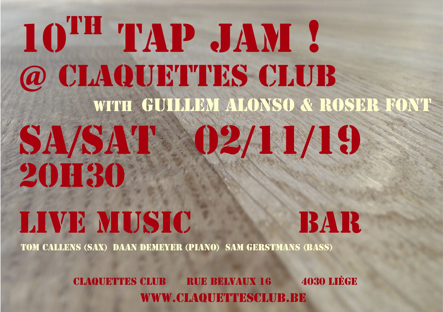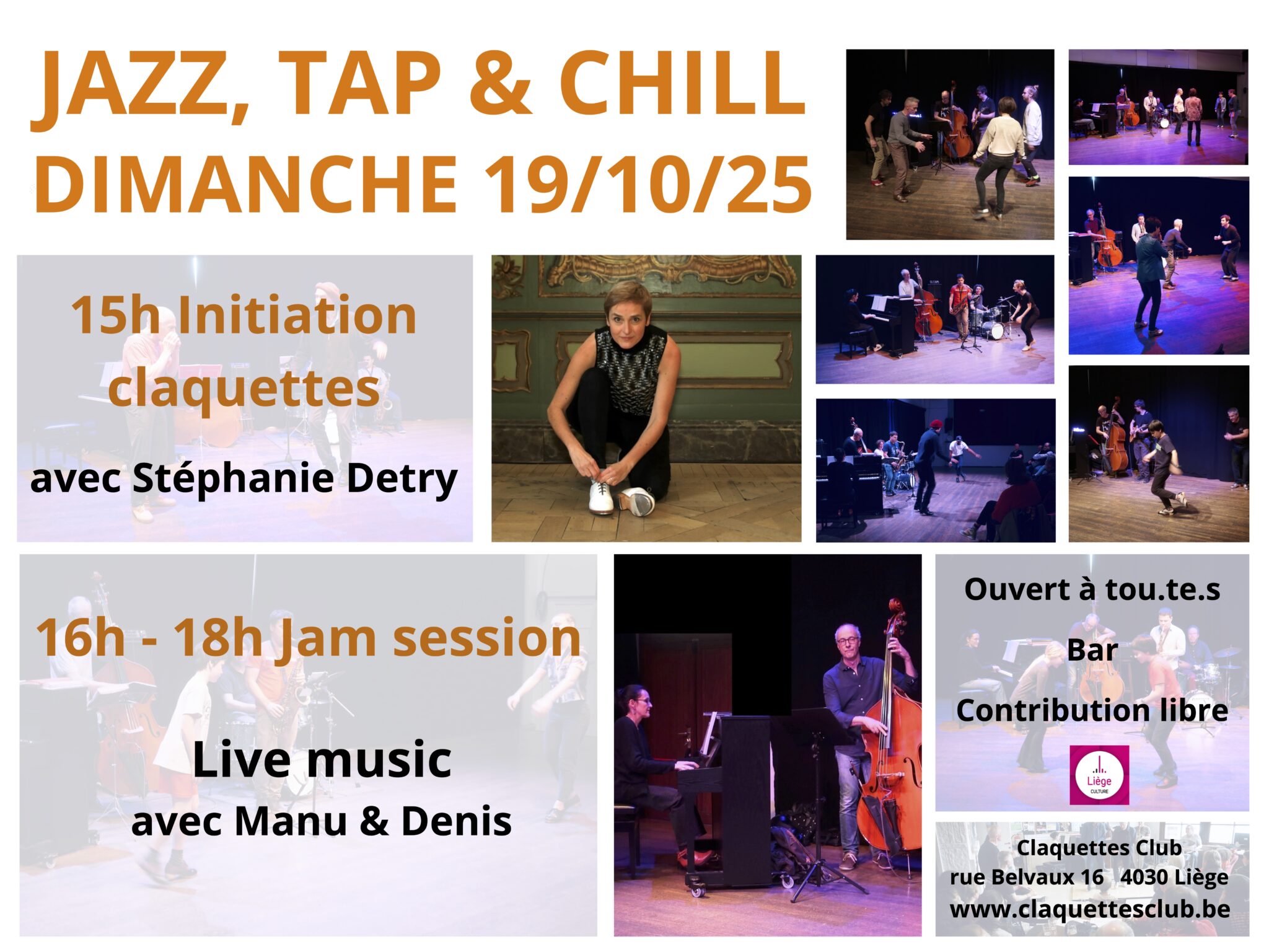 Et pourtant! Les conversations quotidiennes avec le public, amateur de jazz ou non, nous rappellent sans cesse la difficulté de faire comprendre l’essence profonde et intrinsèquement hybride de la forme et l’importance de continuer le travail entamé. Une des missions de l’asbl Tap Liège est de rétablir la connexion entre les deux et de réhabiliter les claquettes américaines comme un instrument de jazz à part entière.